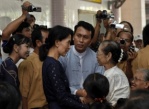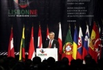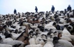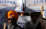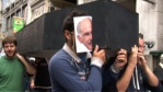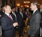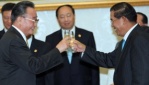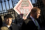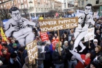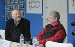 Danish cartoonist Kurt Westergaard (L), the author of the cartoons of the Prophet Muhammad printed by Jyllands Posten in 2005, and his publisher John Lykkegaard (R) in Copenhagen, presenting his autobiography, “The Man Behind the Line“.